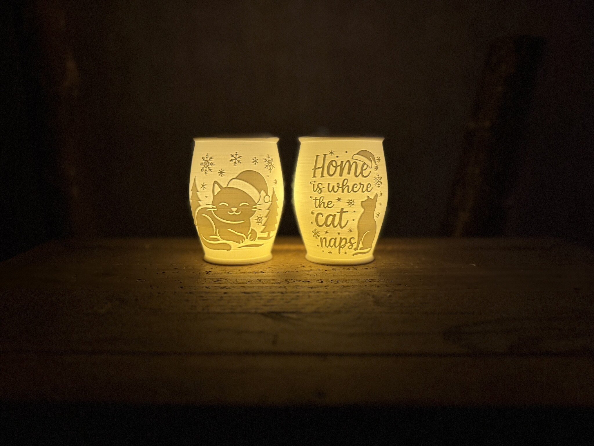 3D print Christmas Tea Light Lamp Home Cat Pos, inclusief led theelichtje