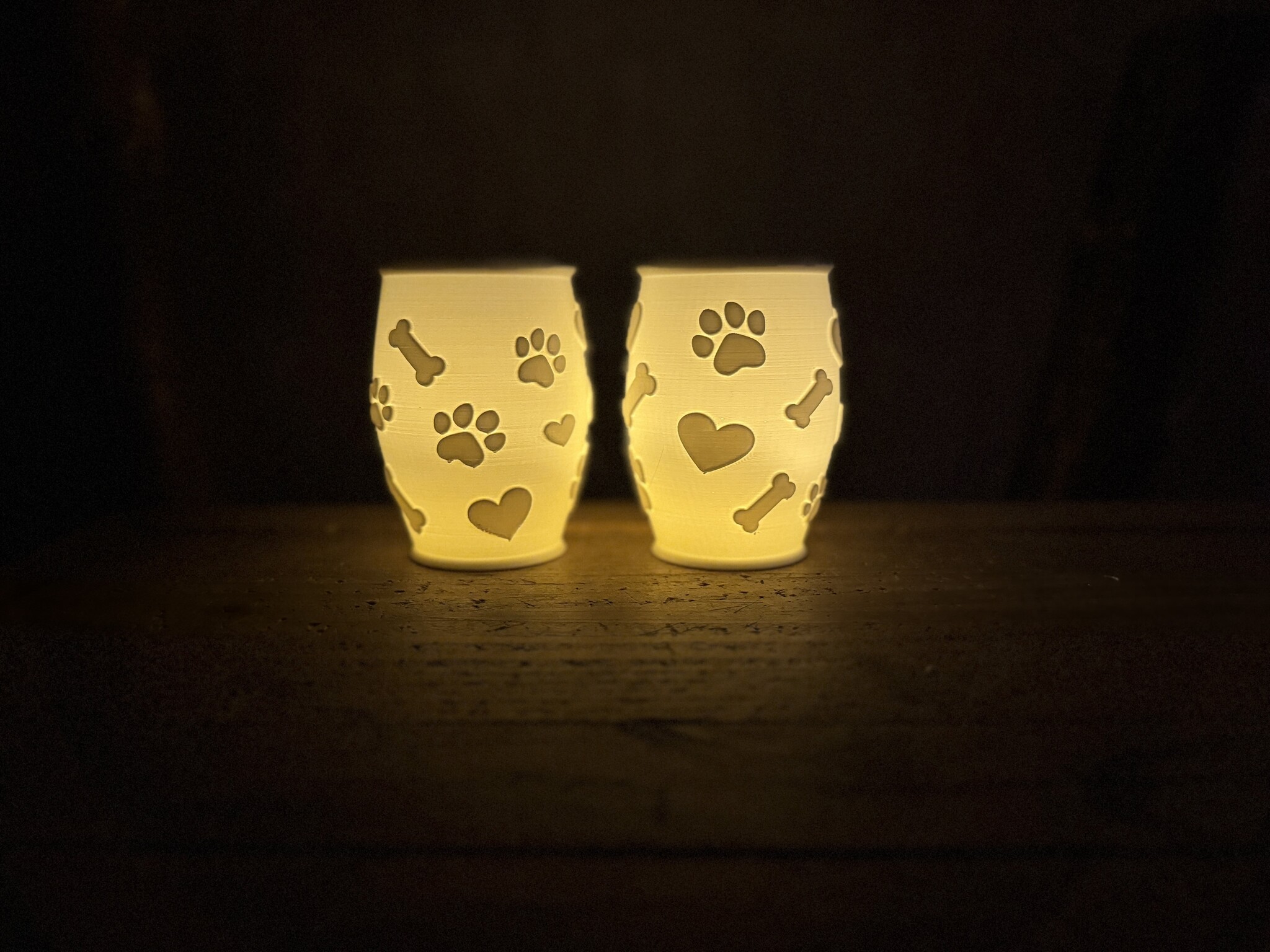 3D print Christmas Tea Light Lamp Paws & Bones Pos. inclusief led theelichtje
