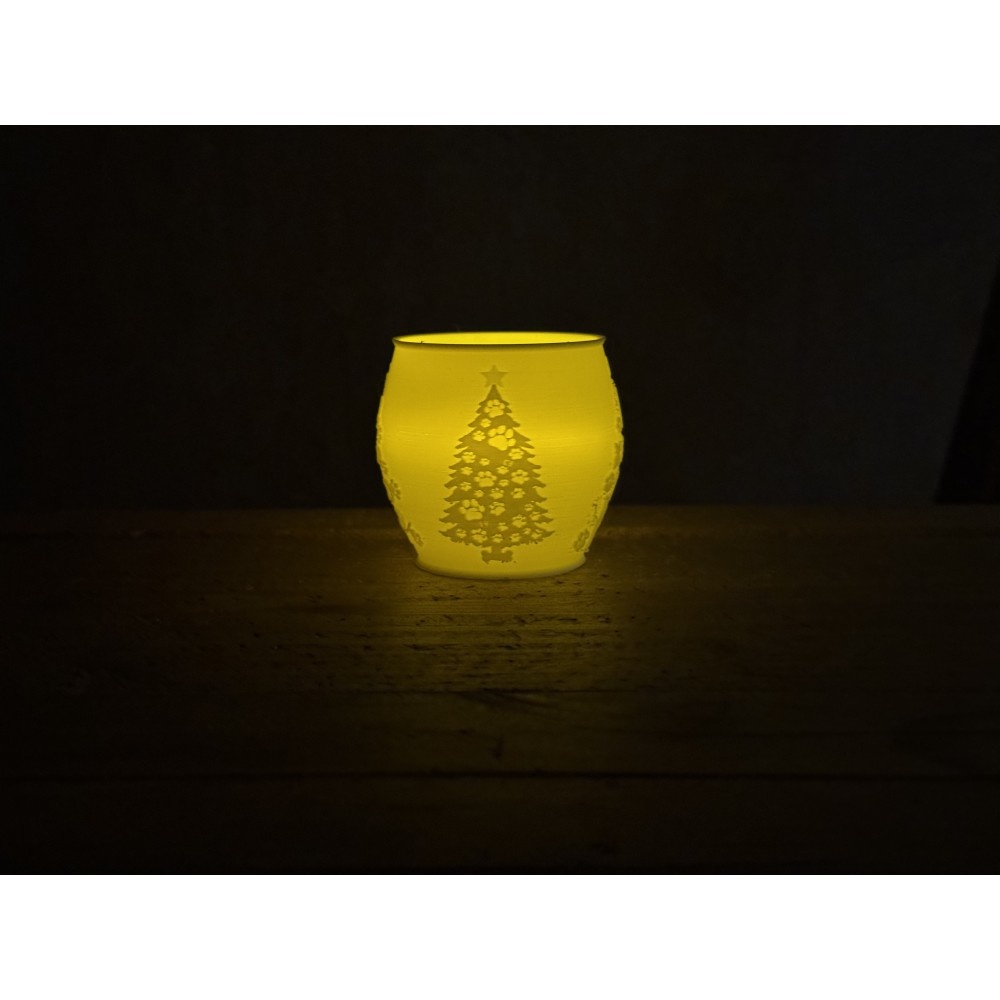Deze 3D-geprinte theelichthouder brengt meteen warmte en sfeer in huis. Zodra het LED-theelicht brandt, verschijnt er een mooi reliëf van pootafdrukken, kerstbomen of lieve dierenfiguren dat een zachte gloed door de kamer verspreidt.