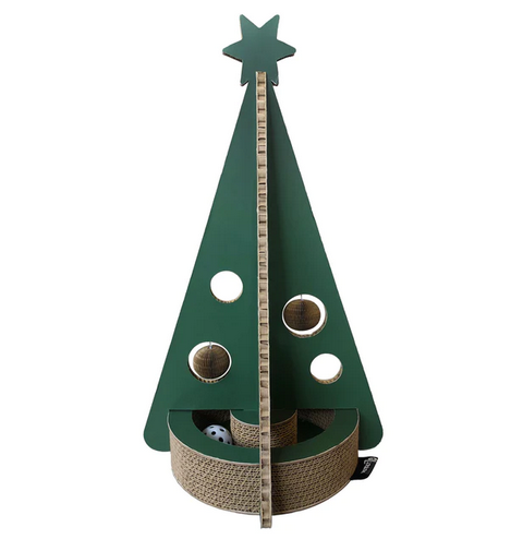 Dit brutale, interactieve speelgoed in de vorm van een kerstboom zorgt gegarandeerd voor veel speelplezier. De kerstboom is niet alleen een lust voor het oog, maar ook voor de oren van uw kat. In het boomvormige speeltje zit een klinkende verrassing die de nieuwsgierigheid van uw kat zal opwekken. Terwijl ze de boom verkent en met haar poot tegen de bel duwt, zal het vrolijke geluid van de bal haar in een razernij van spelen brengen. Nog beter: bij de Kerstboom zitten twee kartonnen balletjes in de vorm van kerstboomversieringen, waar jouw kat naar hartenlust aan kan krabben, vangen en duwen. Deze stevig bevestigde kerstballen zorgen voor urenlang speelplezier en zorgen gegarandeerd voor onvergetelijke kerstmomenten.