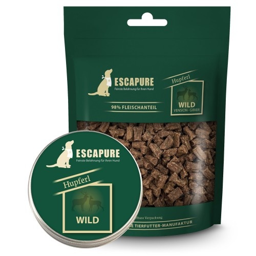 De Escapure Hupferl Wild zijn een bijzondere delicatesse, ideaal als trainingssnoepje. In fijne hapklare stukjes, voorzichtig en natuurlijk gedroogd en verfijnd met beukenhoutrook.