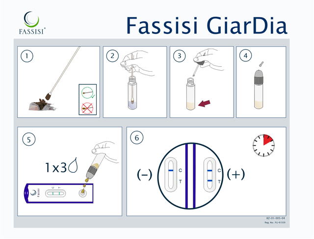 De Fassisi Giardia sneltest maakt het mogelijk om snel en hygiënisch Giardia duodenalis aan te tonen bij hond en kat. Dankzij een innovatieve detectietechniek op basis van latexdeeltjes levert de test een duidelijk resultaat binnen 10 minuten. Bij een positieve uitslag is snelle behandeling en extra hygiëne essentieel. De testkit bevat alles wat je nodig hebt en is geschikt voor gebruik op locatie.- Resultaat binnen 10 minuten