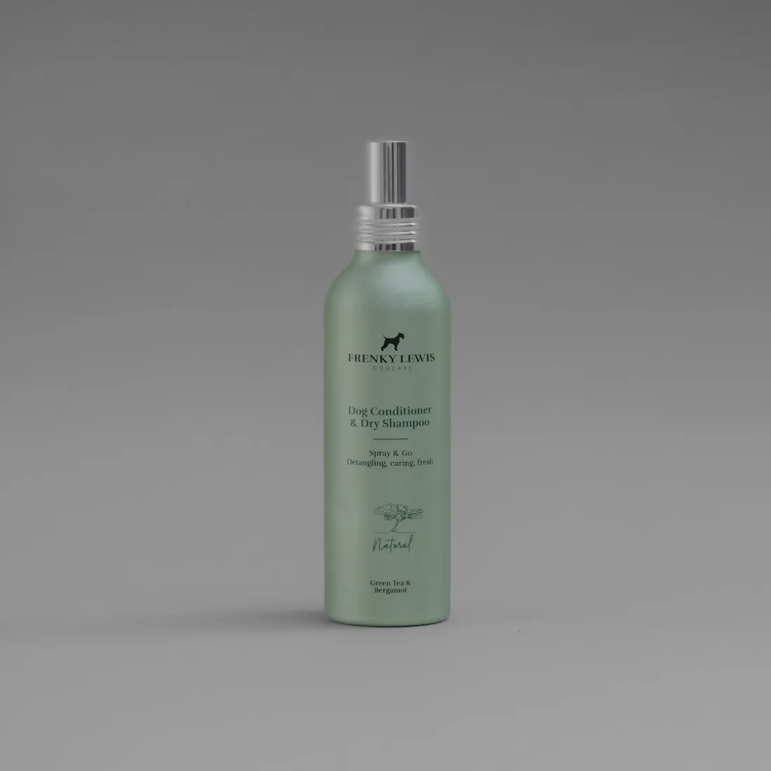 Houd je hond niet van douchen of springt hij graag in de sloot? Met de Frenky Lewis Dry Shampoo & Conditioner Spray geef je hem een frisse, zachte vacht zonder water! De natuurlijke formule met Indiase wasnoten, aloë vera en hennepzaadolie reinigt mild, verzorgt de huid en laat een frisse geur van green tea achter. Ideaal voor tussendoor, na het spelen of vóór het wassen. Vegan, veilig en perfect voor gevoelige honden.