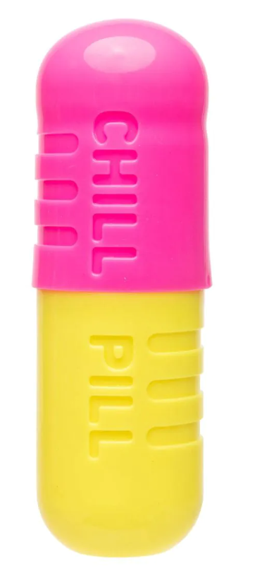 Maak kennis met de Chill Pill Chew Toy. Deze traktatiedispenser bevat een pieper voor dubbel zoveel plezier. Hiermee heeft je hond non-stop entertainment, ook nadat de traktaties verdwenen zijn. De Chill Pill is geschikt voor alle honden, of ze nu groot, klein of harig zijn. Je kunt de traktaties zo in het speeltje doen of de onderdelen uit elkaar draaien. De stervormige opening aan de gele uiteinde van de pil kan traktaties van verschillende groottes doorlaten en biedt aanpasbare uitdagingsniveaus om je hond bezig en blij te houden. Als je hond het speeltje laat rollen, komen de traktaties eruit. Kan niet in de vaatwasser. Was het gele gedeelte op de hand met milde afwasmiddel. Het roze gedeelte kun je het beste schoonwrijven met een doek, als er water aan te pas komt kan de pieper stuk gaan.