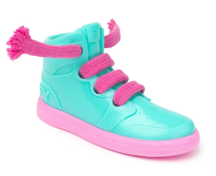 Eindelijk een schoen waar je op MAG kauwen! Met touwveters die tanden flossen en een licki-groefzool om te vullen met pasta en tongen te schrobben, is dit schoenspeeltje de minst saaie manier om een goede mondhygiëne te behouden. FLOSSEN, SCHOONMAKEN EN KAUWEN! - deze sneaker doet het echt allemaal. Gevuld met een smakelijke traktatie, zal deze schoen ongetwijfeld de nieuwe favoriet van je hond worden en je eigen schoenen redden van vernietiging. Voeg de favoriete traktatiepasta van je hond toe aan de zool van de schoen en kijk hoe je hond de groeven nauwkeurig schoonlikt. De schoenveters van stevig touw voegen een extra laag interactiviteit toe. Terwijl je hond kauwt en speelt, fungeren deze innovatieve veters ook als flosdraad. Het speeltje kan niet in de vaatwasser, was het speeltje op de hand met warm water en milde afwasmiddel.