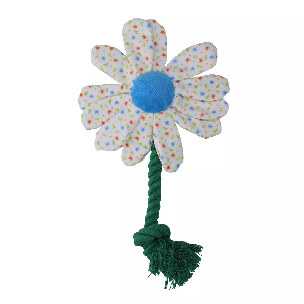 De Garden Paws Flower is een hondenspeeltje met een zachte vorm en een stevig touw. Het speeltje nodigt uit tot actief spel en zorgt voor afwisseling. De naden zijn dubbel gestikt voor een nette afwerking. Flower is verkrijgbaar in een kleine en grote variant. Deels gemaakt van gerecyclede materialen.- Met stevig touw