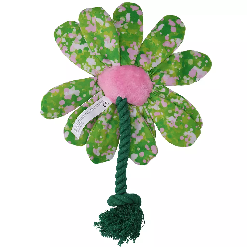 De Garden Paws Flower is een hondenspeeltje met een zachte vorm en een stevig touw. Het speeltje nodigt uit tot actief spel en zorgt voor afwisseling. De naden zijn dubbel gestikt voor een nette afwerking. Flower is verkrijgbaar in een kleine en grote variant. Deels gemaakt van gerecyclede materialen.- Met stevig touw