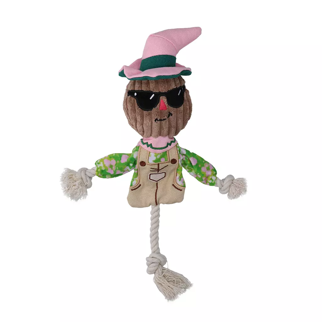 De Garden Paws Scarecrow is een hondenspeeltje met knisperende vulling en een stevig touw. De combinatie van textiel en touw nodigt uit tot interactief spel. De knisperende vulling prikkelt de zintuigen en houdt de aandacht vast. De armen bestaan voor 35% uit gerecycled textiel en de vulling is 100% gemaakt van gerecyclede polypropyleenvezels.