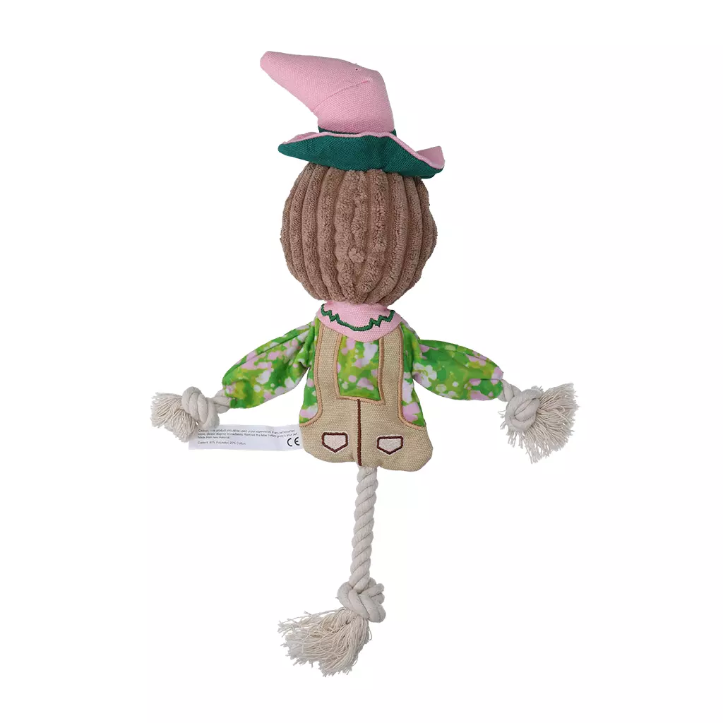 De Garden Paws Scarecrow is een hondenspeeltje met knisperende vulling en een stevig touw. De combinatie van textiel en touw nodigt uit tot interactief spel. De knisperende vulling prikkelt de zintuigen en houdt de aandacht vast. De armen bestaan voor 35% uit gerecycled textiel en de vulling is 100% gemaakt van gerecyclede polypropyleenvezels.- Met knisperende vulling