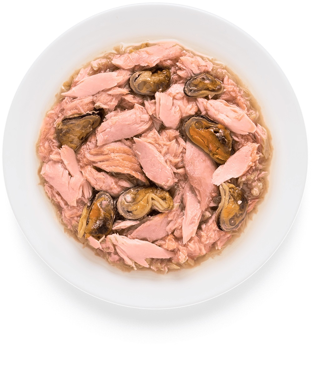 - 65% tonijnfilet en 10% mosselen
