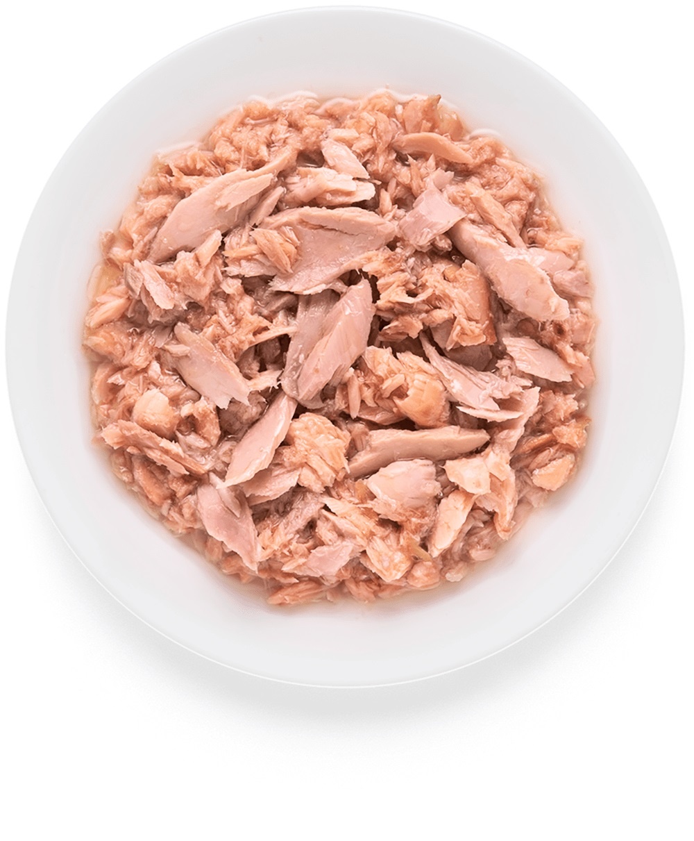 Tonijnfilet (65%), Zalmfilet (10%), Eigen bouillon (24%), Aardappel (1%).Analytische bestanddelen: