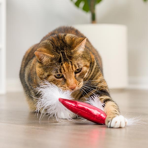 Om het kattenkruid te 'heractiveren' rol je het kattenspeeltje tussen je vingers voor een paar seconden. Kattenkruid is niet bedoeld om op te eten. De reacties op kattenkruid verschillen per kat. Kittens onder de 6 maanden reageren (nog) niet op kattenkruid. Houd toezicht tijdens het spelen en verwijder kapotte speeltjes op tijd.
