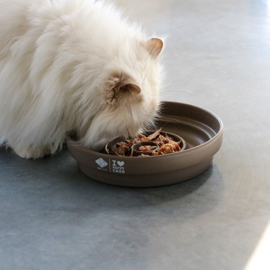 Een prachtige slow down voedselkom van D&D Home | I LOVE Happy Cats, ontworpen met kattengedragstherapeut Anneleen Bru. Stimuleert langzamer eten voor de gezondheid en het welzijn van je kat.