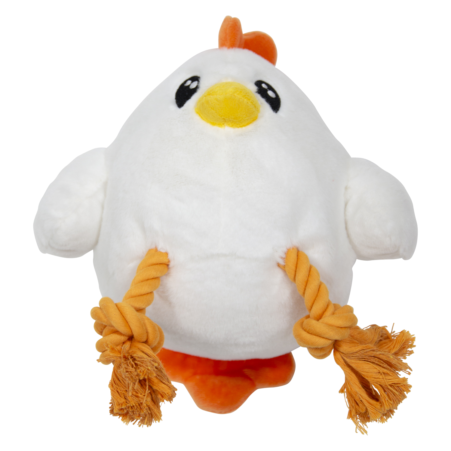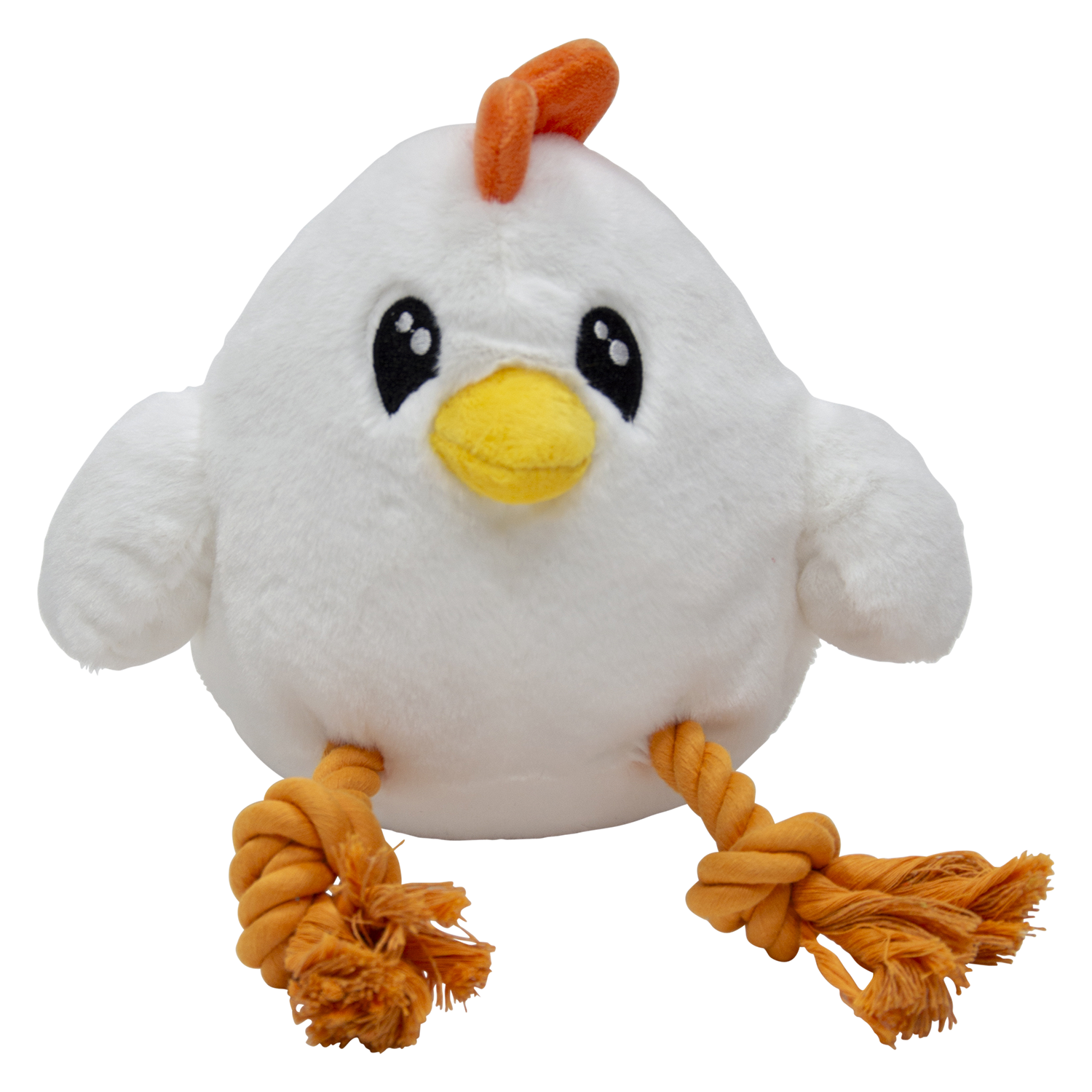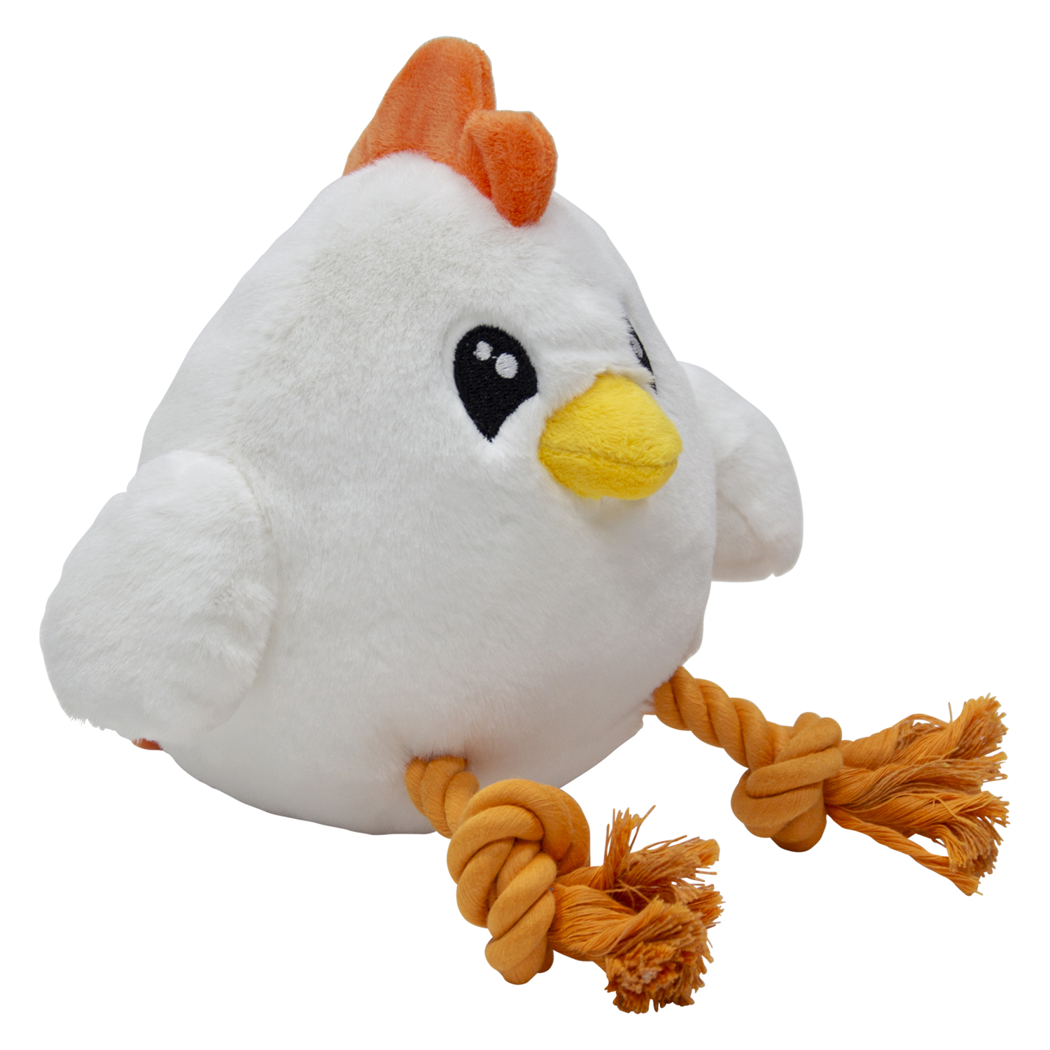 Zacht hondenspeeltje van pluche met flostouw. Geschikt voor rustig spel en knuffelmomenten. Lichtgewicht en makkelijk te dragen. Leuk als seizoensspeeltje, bijvoorbeeld rond Pasen.