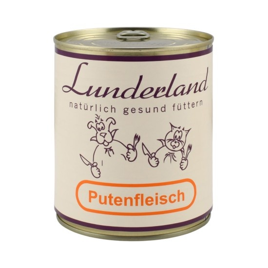Lunderland Kalkoen is een zuiver enkelvoudig vleesproduct van 100% kalkoenvlees. Het blik bevat slechts één ingrediënt en één eiwitbron, zonder toevoegingen of hulpstoffen. Hierdoor is het uitermate geschikt voor gevoelige honden en katten, zeker bij maag- of darmproblemen of wanneer een eliminatiedieet nodig is.