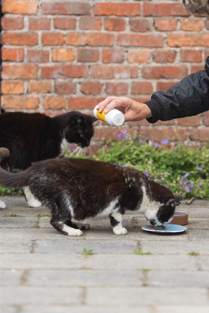 Dit poeder is ook geschikt voor katten, opname door likken is geen enkel probleem.