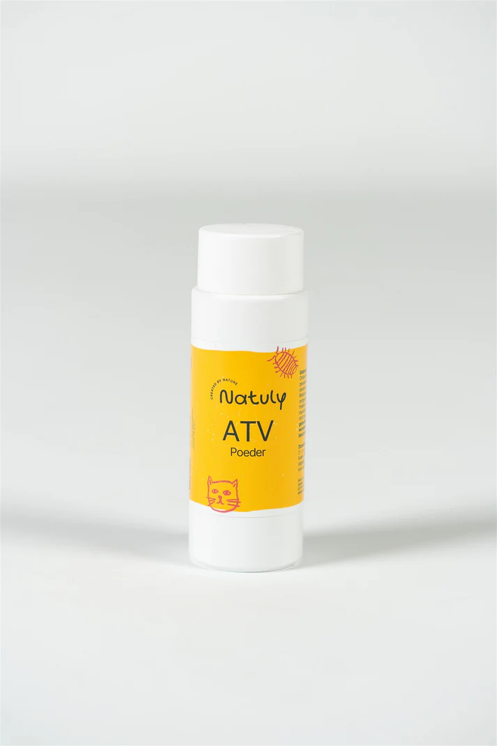 Na de introductie van onze ATV lotion kregen we best veel teleurgestelde reacties van katten baasjes en bazinnen, dus hebben we naar een oplossing gezocht en gevonden. Om het simpel te houden noemen we het ATV poeder omdat het in grote lijnen dezelfde eigenschappen heeft als de ATV lotion.
