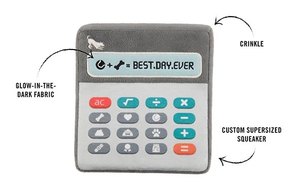 De PLAY rekenmachine is weer een origineel hondenspeeltje van PLAY. De bijzondere platte pieper, de grappige details op de rekenmachine, het display wat oplicht in het donker. Allemaal tekenen dat ze bij PLAY nadenken en de speeltjes met veel zorg en liefde met de hand maken. En jouw hond? Die vindt het speeltje gewoon geweldig.
