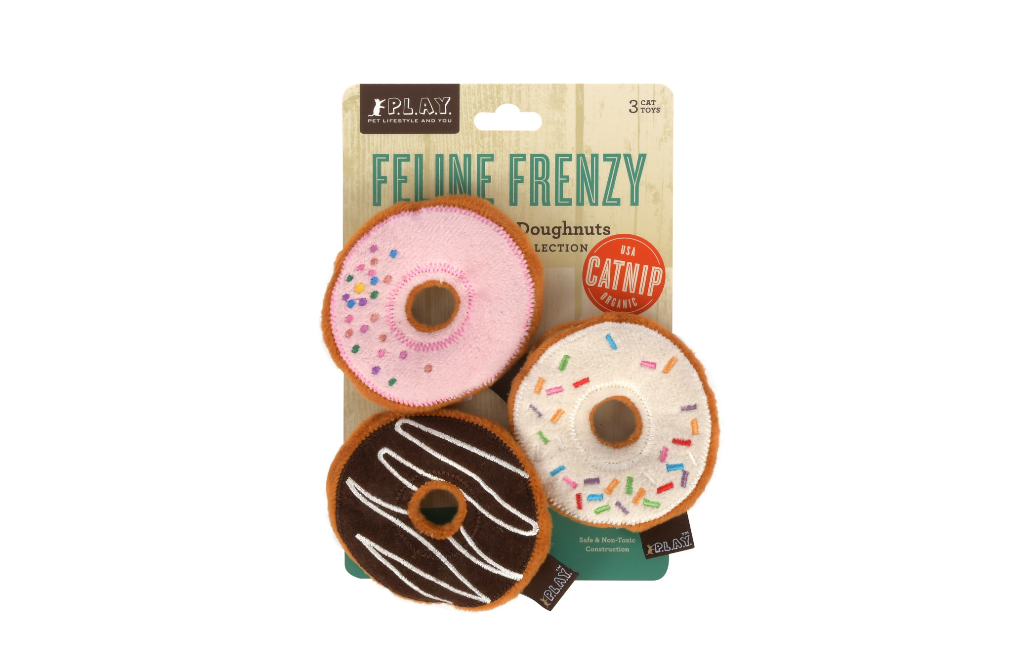Eindelijk zijn er ook donut speeltjes voor de kat. De P.L.A.Y. Donuts is een speelset van wel 3 donuts voor de kat. De donuts bevatten allemaal een krinkelend geluidje en kattenkruid. Het welbekende gat in het midden van de donuts zorgt voor goede houvast tijdens het spelen en hengelen.