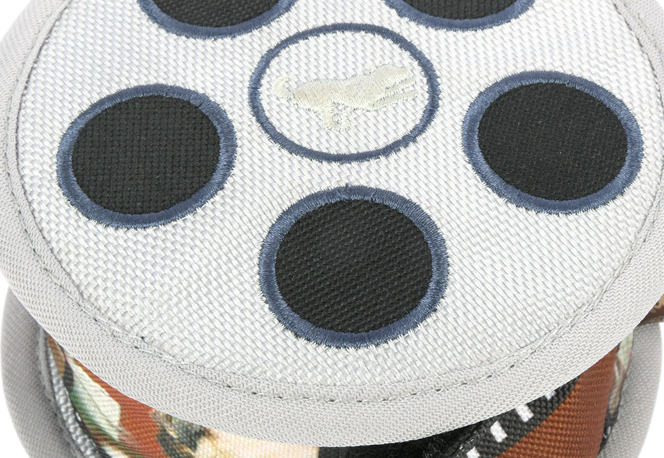 Momo's Movie Reel is gemaakt van een stevig canvas, niet zo pluizig als de meeste PLAY hondenspeeltjes. Wat wel hetzelfde is, is dat alle naden dubbel gestikt zijn en dat alle lagen stof ook dubbelwandig zijn. Hierdoor krijg je een stevig hondenspeeltje.