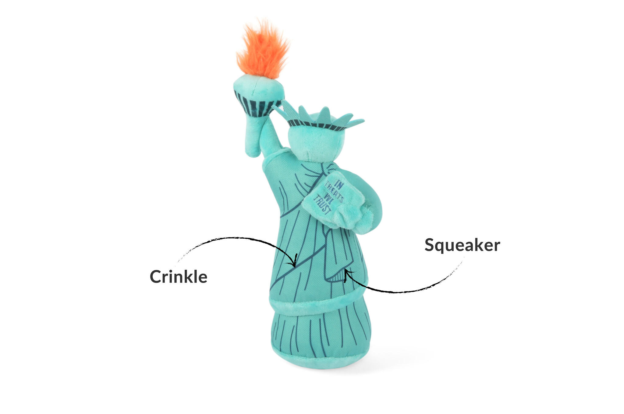 P.L.A.Y. Totally Touristy Statue of Liberty is gemaakt van een zachte pluche stof. De stoffen van alle PLAY speeltjes worden gekleurd met 100% veilige verfstoffen. P.L.A.Y. hondenspeelgoed voldoet aan dezelfde strenge veiligheidseisen als baby- en kinderspeelgoed.Geschikt voor: alle honden