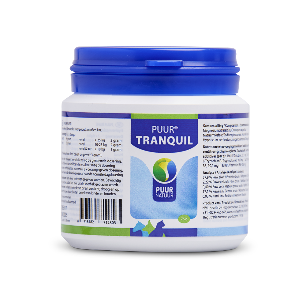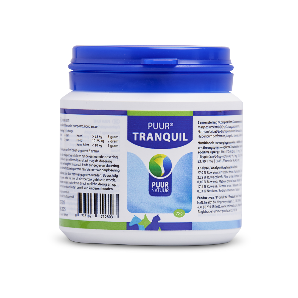 Puur Tranquil is een natuurlijk middel tegen angst en onrust. Puur Tranquil (voorheen Puur Rust) is effectief in te zetten bij vuurwerkangst, verhuizing, bij veranderde situaties en tijdens training.