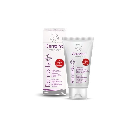 Cerazinc Crème ondersteunt het herstel van schrale of rode huid bij gezelschapsdieren en paarden. De combinatie van zinkoxide en medicinale honing verzacht, droogt natte plekken en werkt verkoelend. Ideaal voor huidplooien, tussen tenen of bij gesprongen huid. De crème sluit de huid niet af en bevat geen hormonen of antibiotica. Veilig voor dagelijks gebruik bij gevoelige huid.- Verzacht schrale en rode huid