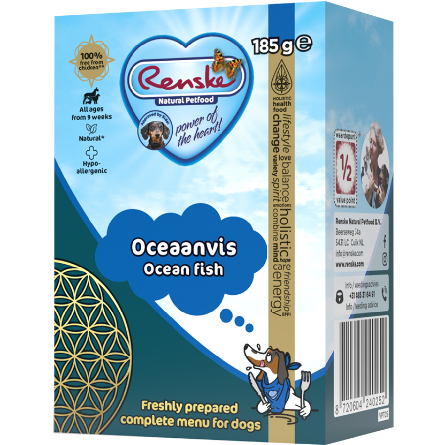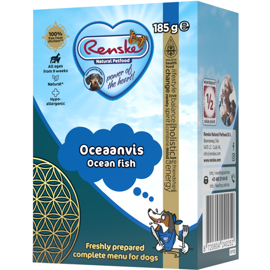 De vers bereide maaltijd oceaanvis is verrijkt met zalmolie, duindoorn, gedroogde algen en yucca schidigera. Zalmolie zit boordevol omega-3 wat goed is voor het behoud van een gezonde huid- en vacht en ter ondersteuning van gezonde gewrichten. Duindoorn zit boordevol natuurlijke antioxidanten, draagt bij aan de ontwikkeling van de hersenen en ondersteunt het herstellende vermogen van de huid en vacht van de hond. Daarnaast bevat deze maaltijd een natuurlijke bron van prebiotica: Xylo-oligosacchariden, welke een gezonde spijsvertering en gezond immuunsysteem ondersteunt. De gedroogde algen zitten boordevol omega-3 en jodium. Verder kan de toevoeging van yucca schidigera ondersteuning geven bij de meest voorkomende klachten waaronder klachten aan het maagdarmkanaal, huid, oren en gewrichten. Als laatste kan Yucca ook de ontlastingsgeur verminderen.