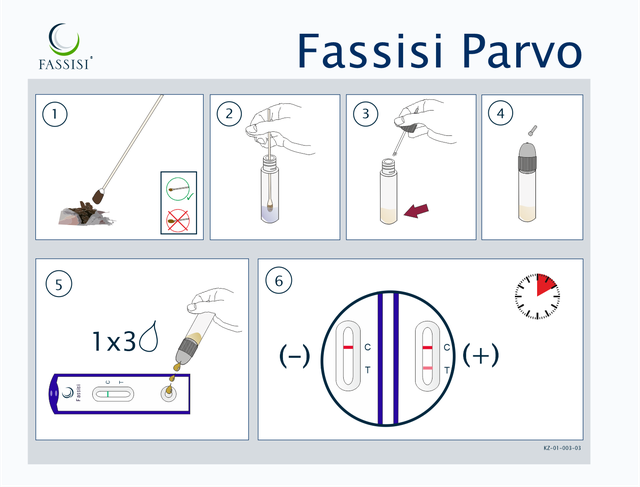 De Fassisi Parvo sneltest spoort parvovirus-antigenen snel en betrouwbaar op in ontlasting van hond en kat. Resultaat binnen enkele minuten, gebruiksklaar en nauwkeurig.