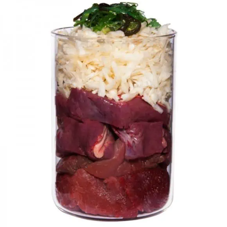 Paardenspiervlees (60%), artisjok (36%), koolzaadolie, zeewier*, mineralen *gedroogd