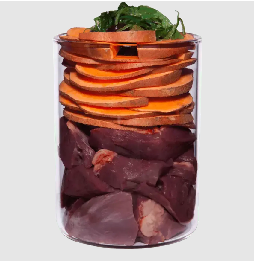Spiervlees van waterbuffel (60%), zoete aardappel (36%), koolzaadolie, zeewier*, mineralen *gedroogd
