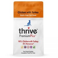 Thrive Droogvoer Kip met Kalkoen is gemaakt met 90% kip en kalkoen; een uitzonderlijk hoog vleesgehalte voor droog kattenvoer. Het is de perfecte balans tussen licht verteerbare kip en kalkoen van hoge kwaliteit met zoete aardappel en aardappel, wat resulteert in een zeer laag koolhydraatgehalte (12%). Ze hebben zalmolie van hoge kwaliteit toegevoegd om te voorzien in omega-6 (3,8%) en omega-3 (0,6%) oliën, wat resulteert in een onweerstaanbare complete voeding die alle vitamines, mineralen en taurine bevat die uw kat nodig heeft.