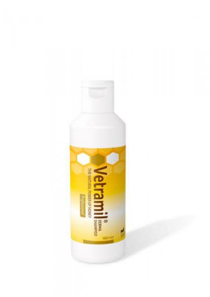 De Vetramil hondenshampoo bevat medicinale honing. Uiteraard is de shampoo niet zo plakkerig als honing, maar wel zo voedend en verzorgend. Honden met een geïrriteerde, schilferige en droge huid hebben veel baat bij de Vetramil hondenshampoo. De shampoo voedt de huid en verzorgt de vacht.