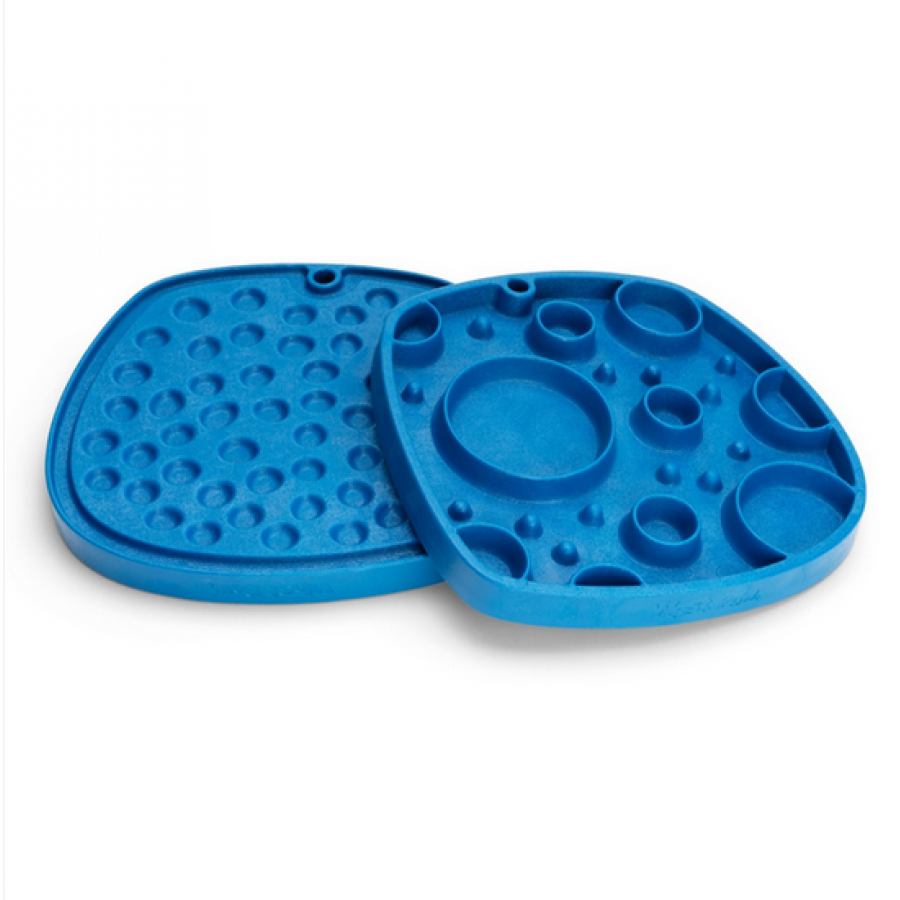 De West Paw Feast Mat Bubbles™ biedt honden een innovatieve eetervaring. De Slow Feeder-kant heeft diepe groeven die het speuren en ontdekken tijdens het eten aanmoedigt en de Lick Mat-kant is geschikt om kleine vakjes uit te likken wat juist weer rustgevend werkt. In vergelijking tot andere likmatten heeft deze mat een dikkere constructie, waardoor de mat langer mee gaat en daardoor ook duurzamer is. De mat is gemaakt van veilig materiaal, BPA-vrij, vaatwasser bestendig en dus makkelijk te reinigen. De antislipconstructie zorgt ervoor dat de mat op zijn plaats blijft, terwijl de hond geniet van zijn maaltijd. De mat is verkrijgbaar in verschillende kleuren en naast het motief met Bubbles, er is ook een motief met Waves.- Slowfeeder en Lickmat in 1