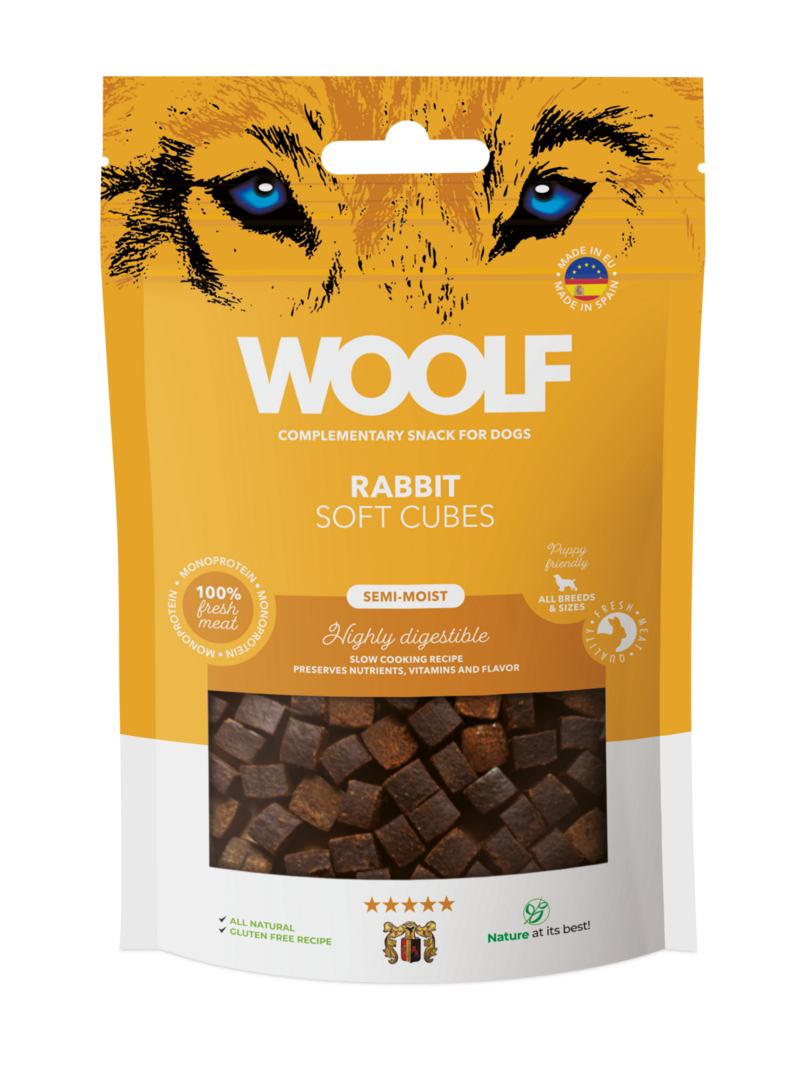 Woolf Soft Cubes zijn een zachte en smaakvolle traktatie geschikt voor training, belonen of gewoon als snack.