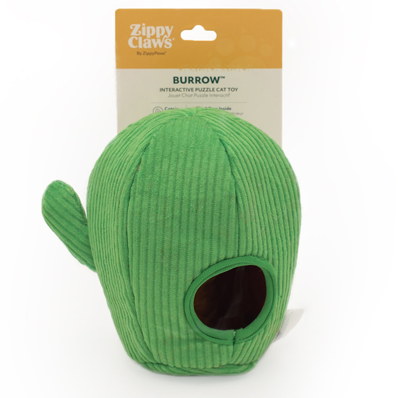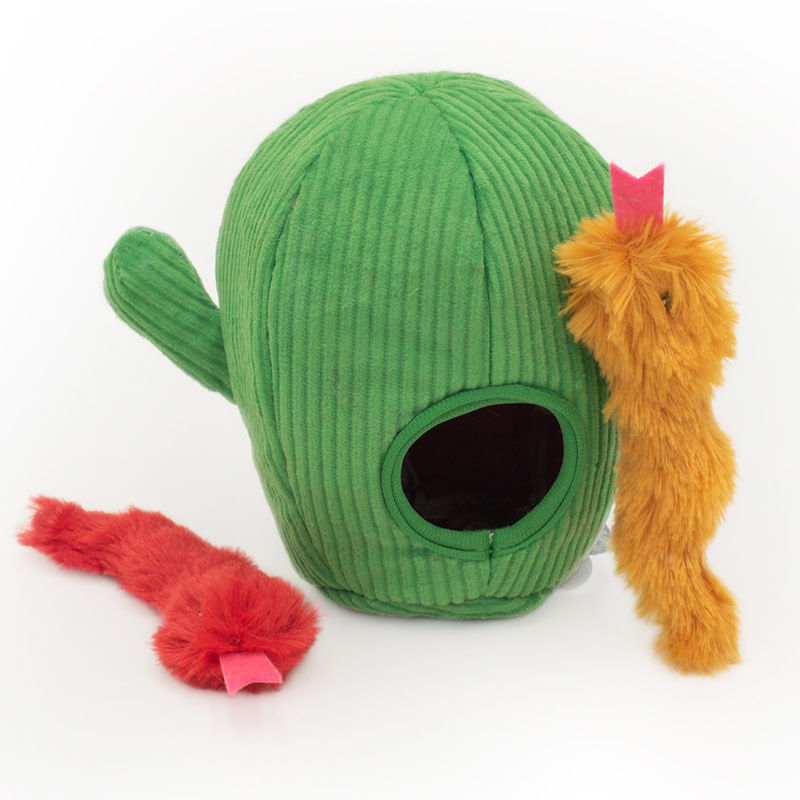 ZippyClaws Burrow Snakes in CactusDe 2 harige slangen zitten in de cactus verstopt. Jouw kat kan aan het werk om de speelslangen te vangen. Alles is toegestaan; hengelen, bijten, krabben, slaan en gooien. Stop jij de slangetjes weer terug als jouw kat ze gevangen heeft? Eindeloos speelplezier. De cactus maakt een krinkelgeluid en de 2 slangen zijn gevuld met kattenkruid voor extra aantrekkelijkheid. - Heel veel speelplezier met 2 harige slangen