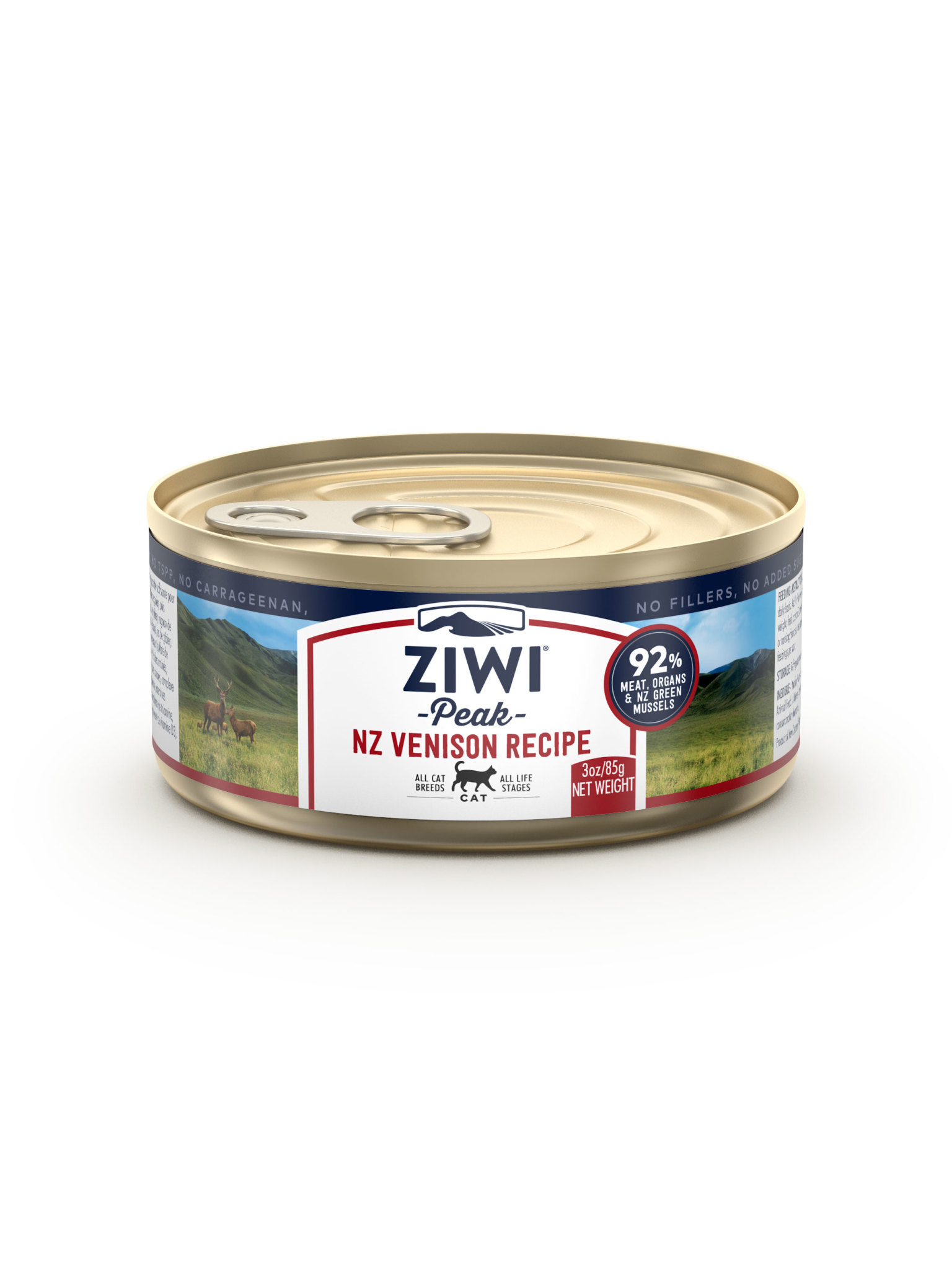 De natvoeding voor katten van Ziwi Peak in blik, bereid in Nieuw-Zeeland, is uniek omdat het maar liefst 93% vlees van hert bevat. Het is een vernieuwende eiwitbron, ideaal voor katten met allergieën, gevoeligheden voor andere eiwitten of overgewicht. Het hertenvlees is afkomstig van lokale boerderijen in Nieuw-Zeeland, zodat de dieren vrij uitlopen en gras kunnen eten.