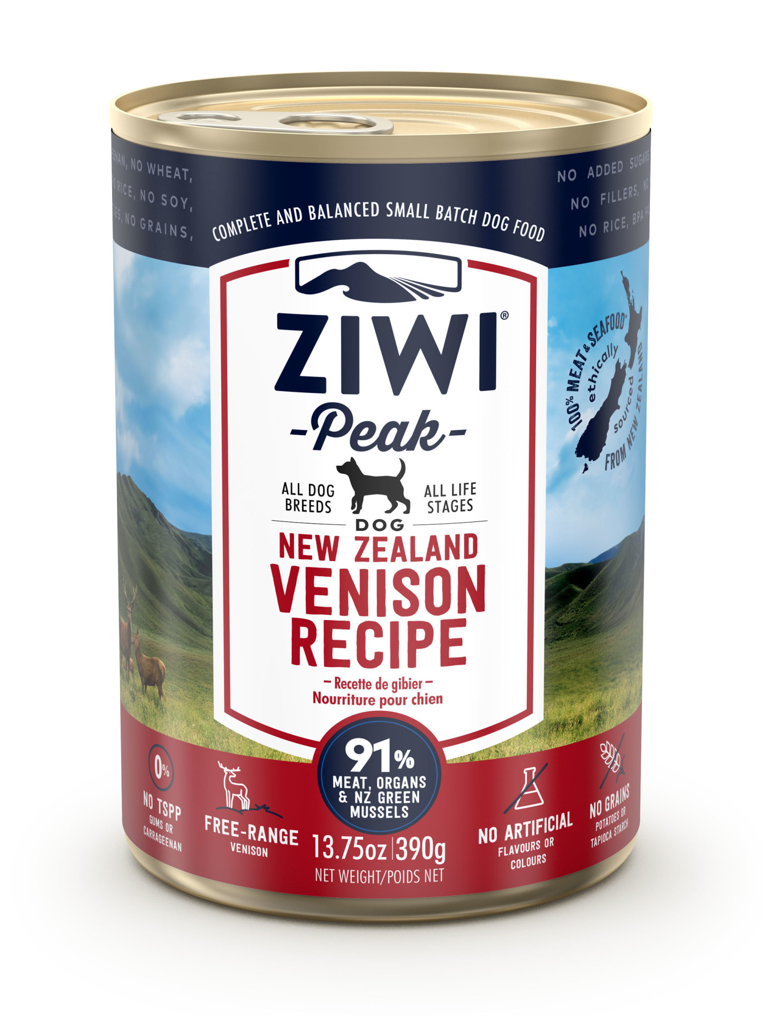 De natvoeding van Ziwi Peak in blik, bereid in Nieuw-Zeeland, is uniek omdat het maar liefst 92% (vers en/of gedroogd) vlees van hert bevat. Het recept is eenvoudig, maar volledig en in balans zodat je hond kan genieten van een heerlijk voeding die bij perfect aansluit bij zijn of haar behoeften. De voeding bevat ook Nieuw- Zeelandsegroenlipmossel voor natuurlijke glucosamine en chondroïtine en soortspecifieke pens, voor extra smakelijkheid en een goede spijsvertering.